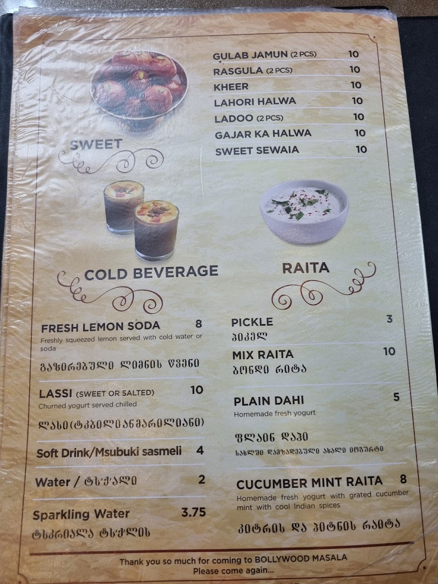 “ I had a wonderful dining experience at Bollywood Masala! The food was absolutely delicious, with rich flavors and authentic taste. The ambience was warm and inviting, making it a great place to enjoy a meal. Plus, they offer halal food, which was a huge plus for me. Highly recommend this place to anyone looking for great Indian cuisine in Tbilisi! ”